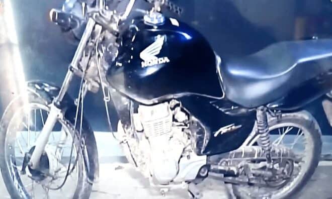 Policiais explicaram que estavam fazendo um patrulhamento de rotina na parte alta da capital quando foram avisados por uma denúncia anônimo de que no quintal de uma casa havia uma motocicleta de origem, no mínimo, suspeita.