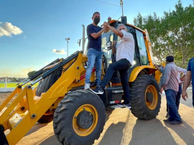 Em visita a região do Alto Acre, o senador Sérgio Petecão entregou mais uma máquina retroescavadeira à Prefeitura de Assis Brasil, é o segundo veículo pesado que o senador entrega, este ano, ao município.