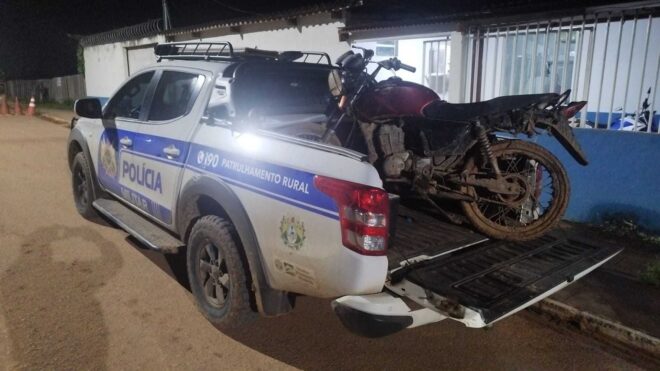 Durante uma operação realizada pela Polícia Militar do Acre (PMAC) na noite desta sexta-feira, 21, no ramal do Cacau, na zona rural do município de Bujari, uma guarnição recuperou uma motocicleta roubada e prendeu um homem pelo crime de receptação.