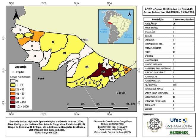 Neste sentido, o Grupo de Pesquisa Hidrologia, Meio Ambiente, e Geografia dos Riscos (HMAGR), buscou elementos para tentar compreender e colaborar na compreensão do cenário de disseminação e espacialização da Covid-19, no estado do Acre.