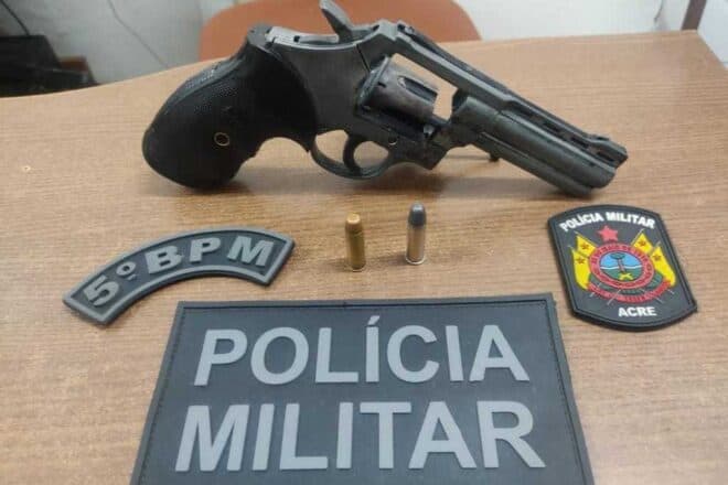 Na noite de sábado, 7, em Brasileia, a guarnição prendeu um homem com uma pistola calibre .9mm, com dez munições. A ocorrência foi resultado de uma denúncia anônima, que informava aos policiais a localização e características do criminoso.
