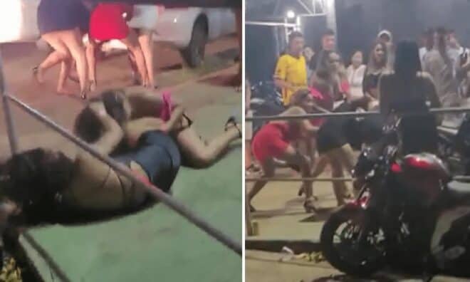 As brigas, em grupos, prosseguem por vários minutos sem a interferência de seguranças ou policiais. São outras mulheres que agem para apartar as que se agridem mutuamente. Uma pessoa que não aparece nas imagens quebra uma garrafa de cerveja nas costas de uma das mulheres.