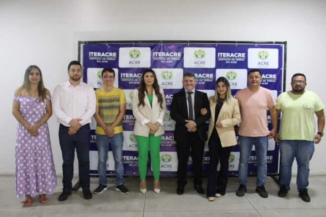 Ainda Cumprindo agenda na Capital Acreana, o prefeito de Epitaciolândia Sérgio Lopes, acompanhado pela primeira dama, Alliny Saldanha, esteve no ITERACRE (Instituto de Terras do Acre) onde foi recebido pela presidente do Instituto, Gabriela Câmara.