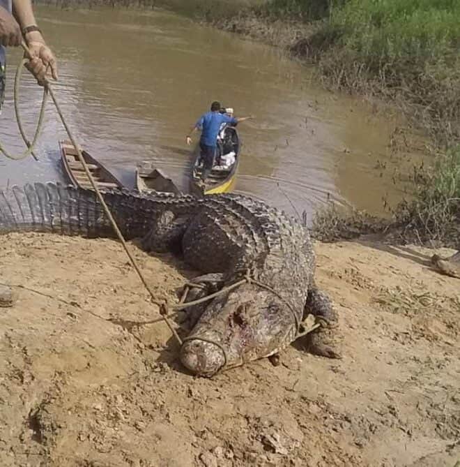 Jacaré de mais de 4 metros foi abatido por moradores/ Foto: Jota Cavalcante