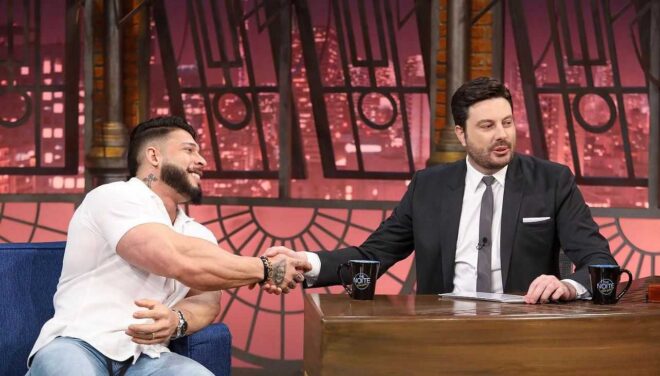 O atleta de fisiculturismo do Acre, Ramon Dino, foi o entrevistado do Programa The Noite, do apresentador Danilo Gentili, do SBT, desta terça-feira (15). O acreano acabou de retornar ao Brasil após ser vice-campeão do Mr. Olympia, a maior competição de fisiculturismo do mundo.