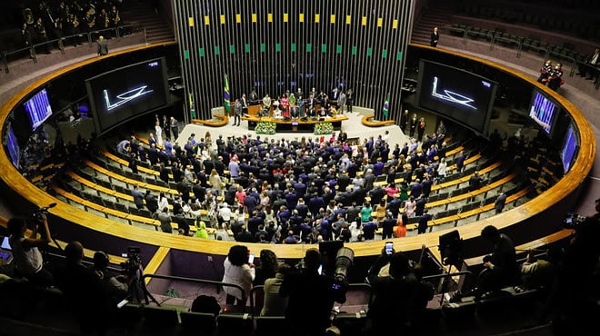 Sessão de posse dos novos deputados federais, no plenário da Câmara dos Deputados. | Sergio Lima/Poder360 01.fevereiro.2023