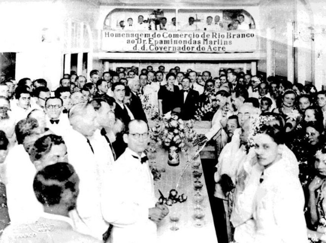 Baile oferecido pelos comerciantes de Rio Branco a Epaminondas Martins, governador do Acre. Foto: Divisão de Patrimônio Histórico e Cultural (DPHC)