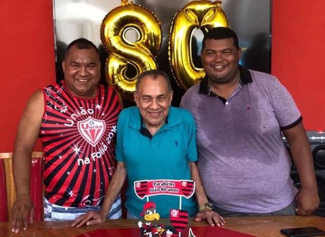 Seu João Maia, ao lado de seus filhos, Clayton e Cléber - Foto/álbum familiar