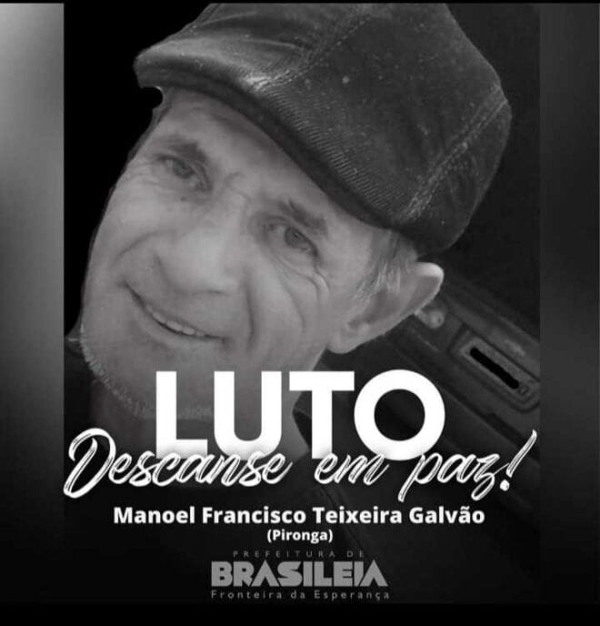 O Sindicato dos Funcionários Municipal de Brasileia- SFMB, vem por meio desta, se solidarizar com os familiares e amigos de Manoel Francisco Teixeira Galvão, conhecido por ‘Pironga’, sócio desde 1988, trabalhava na Secretaria de Obras do Município de Brasiléia.