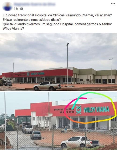 Fotos que circulam nas redes sociais neste domingo, dia 26, levantou uma polêmica entre os moradores e os que defendem o atual governo de Sebastião Viana (PT). Prestes a entregar parte de sua obra depois de quatro anos de atraso, moradores registraram a fachada com o nome de Wildy Viana, que também é pai do senador Jorge Viana.