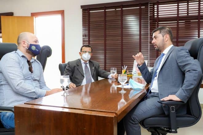 O presidente da Assembleia Legislativa do Acre, deputado Nicolau Júnior (PP), e o primeiro-secretário da Casa, deputado Luiz Gonzaga (PSDB), receberam a visita do novo secretário de Empreendedorismo e Turismo do Acre (SEET), Jhon Douglas, para tratarem sobre investimentos e parcerias para o Empreendedorismo e setor turístico do Acre.