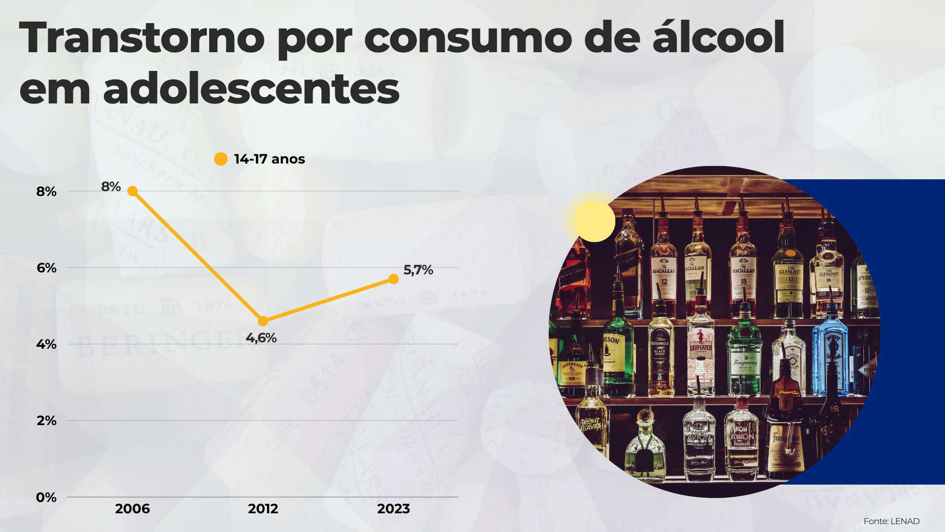 5,7% dos adolescentes brasileiros desenvolvem transtornos relacionados ao consumo de álcool em fases iniciais.