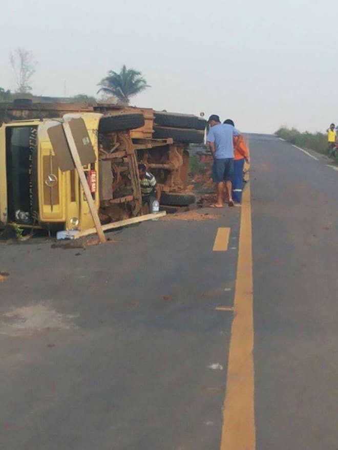 Um caminhão carregado com bezerros tombou no quilômetro 41 da BR-364, entre Sena Madureira e Rio Branco na manhã deste sábado (3). O motorista caiu em uma depressão à margem da estrada e acabou perdendo o controle do veículo.