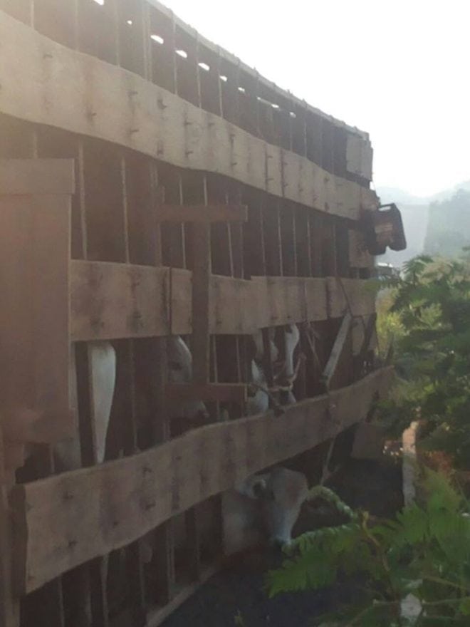 Muitos bezerros ficaram machucados com o tombamento, outros morreram sufocados.