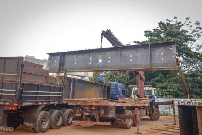 A construção do Viaduto Mamed Bittar, localizado no cruzamento da Avenida Ceará com a Avenida Dias Martins, em Rio Branco, avançou para uma das etapas finais de execução. A informação foi confirmada no sábado (20) pela Albuquerque Engenharia, empresa responsável por parte significativa da obra, que anunciou o início da montagem do último vão da estrutura metálica.