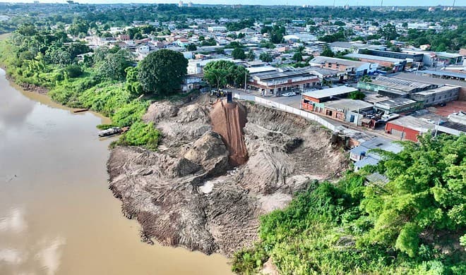 Intervenção é de alta relevância para a contenção do avanço do Rio Acre. Com a contenção, toda a história do Segundo Distrito será preservada. Foto: Pedro Devani/Secom