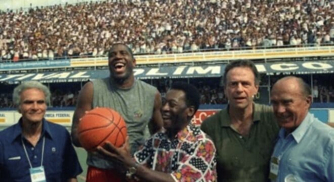 Magic Johnson recorda ter ficado emocionado ao ser homenageado por Pelé em uma partida de futebol no Rio de Janeiro. “Nunca em meus sonhos mais loucos pensei que o conheceria, seria homenageado e passaria um tempo com ele em seu país de origem. Foi um dos momentos mais especiais da minha vida”, disse o cinco vezes campeão da NBA (Liga de Basquete dos Estados Unidos).