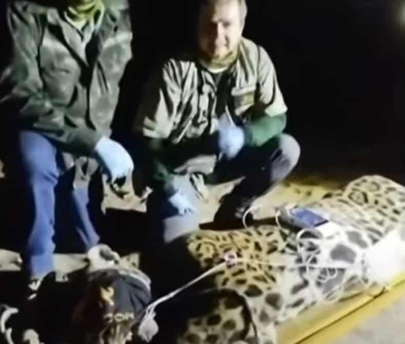 No momento da captura, foram instalados um acesso venoso e um monitor de frequência cardíaca e temperatura na onça.