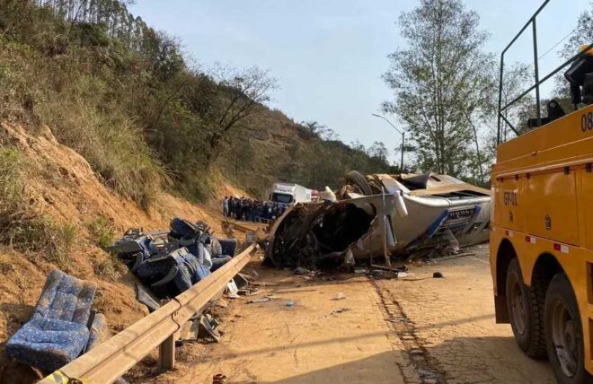 Neste momento, os Bombeiros trabalham na retirada dos últimos corpos. “É um trabalho que requer um pouco de paciência. Alguns corpos ficaram sob o veículo”, afirmou o tenente Fernando Frois.