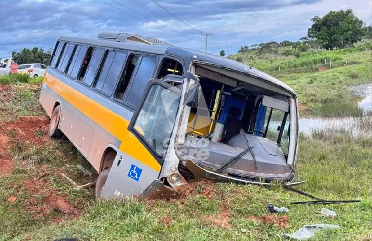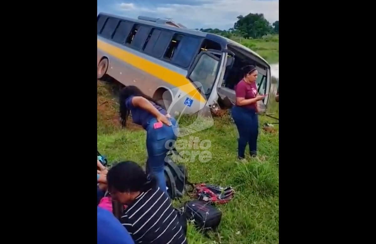 Ônibus escolar perde direção e desce ribanceira na AC-40; crianças passam por susto, mas ninguém fica gravemente ferido