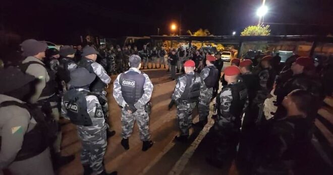 Mais de 100 policiais militares atuam na operação, que também tem o apoio da Secretaria de Justiça e Segurança Pública, além de promotores de Justiça dos Gaecos do Acre e Rondônia, e servidores do MPAC.