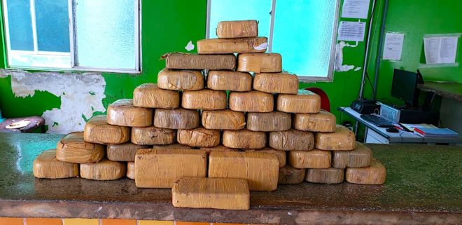 Sem ter como fugir do aparato militar na barreira, o condutor se entregou. Foi quando realizaram uma vistoria e dentro dos forros do veículo, foram encontrados armazenados cerca de 40 ‘tijolos’, somando aproximadamente de 45 quilos de cloridrato de cocaína.