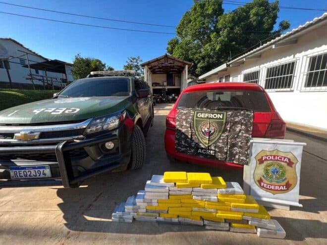 Pelo menos 61,875 quilos de cocaína e skunk foram aprendidos numa operação conjunta das polícias, no km 16 da BR-317, entre os municípios de Epitaciolândia e Xapuri, na região do Vale do Alto Acre, na manhã deste domingo, 8. Um homem de 34 anos transportava a droga, embalada em forma de tabletes e acondicionada no porta-malas de um veículo Gol.
