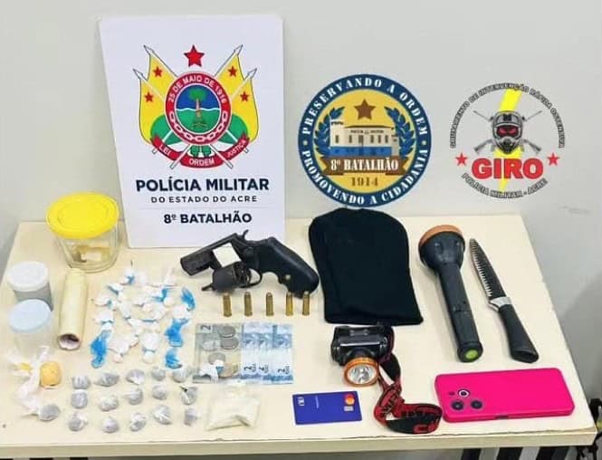Em uma operação de patrulhamento na noite deste sábado (16), a Polícia Militar de Sena Madureira prendeu em flagrante suspeitos por tráfico de drogas e porte ilegal de arma de fogo. Segundo as autoridades, além dos entorpecentes e da arma, foram apreendidos uma touca ninja, uma faca e outros objetos.