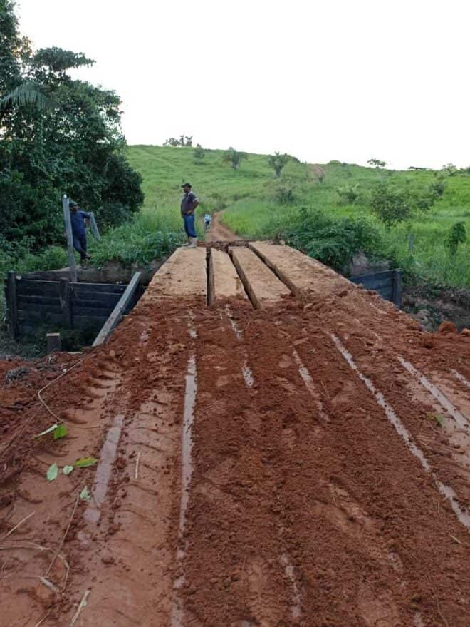 Nesta quinta-feira, dia 2, a equipe realizou retirada de pontos críticos e reconstrução de duas pontes no ramal do km 60.