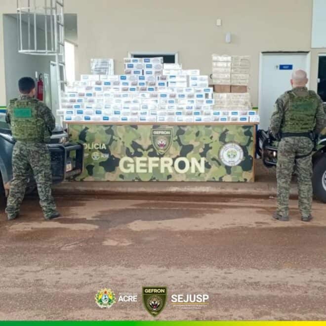 Em mais uma ação bem-sucedida da Operação PROTETOR das Fronteiras e Divisas, o Grupo Especial de Operações em Fronteira (GEFRON), vinculado à Secretaria de Justiça e Segurança Pública (SEJUSP), apreendeu uma grande quantidade de cigarros contrabandeados da Bolívia. A interceptação ocorreu durante patrulhamento na BR-364, no município de Senador Guiomard, quando os agentes abordaram um veículo que seguia de Plácido de Castro para Rio Branco.
