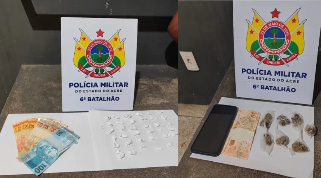 Durante a Operação Sentinela, realizada pelo 6° Batalhão da Polícia Militar, duas pessoas foram presas em flagrante delito pelo crime de tráfico de drogas em Cruzeiro do Sul.