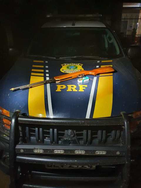 A abordagem aconteceu no Km 113, por volta das 16h. Dentro do veículo, estava o condutor que transportava uma espingarda calibre 22, com 45 munições intactas. Indagado, o motorista confirmou a propriedade, mas não apresentou nenhuma autorização legal para o armamento.