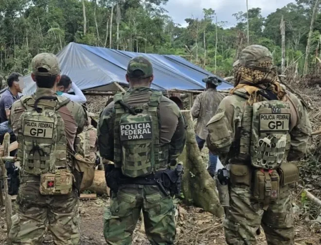 Durante a operação, foram identificadas diversas estruturas clandestinas erguidas na área, além de materiais utilizados para a demarcação e comercialização irregular de lotes. Os quatro suspeitos foram detidos no local e conduzidos à Superintendência da Polícia Federal em Rio Branco, onde foram autuados em flagrante. Eles permanecerão à disposição da Justiça Federal e poderão responder por outros crimes, conforme o avanço das investigações.