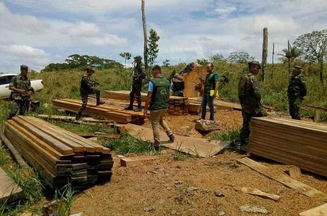 Também foram identificados três focos de incêndio em área desmatada, que foram apagados. A missão comandada pelo Comando de Fronteira do Acre/4º BIS – 4º Batalhão de Infantaria e Selva – contou com o apoio de agentes do ICMBio e do IMAC, além do Corpo de Bombeiros, de um técnico da Secretaria Estadual do Meio Ambiente (SEMA) e de um agente da Defesa Civil.