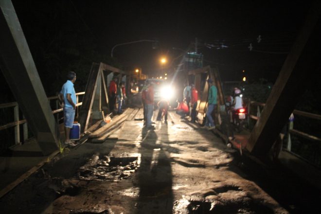 Os trabalhos que estão sendo realizados desta vez, será a troca da madeira que está podre que irá receber a camada de asfalto. Um imprevisto aconteceu, o Deracre teve que pedir ajuda à prefeitura de Epitaciolândia após a retroescavadeira ter a hidráulica danificada e continuar o serviço.