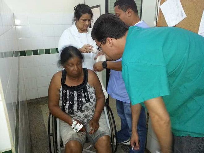 Dona Elide foi socorrida por um parente e a levaram para o hospital de Brasileia onde recebeu atendimento médico, e depois de algum tempo, foi liberada pelo medico de plantão, para cuidar do machucado.