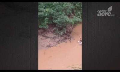 Uma cena inusitada foi registrada na manhã deste domingo, dia 22, de pessoas que estariam arriscando suas vidas em atravessar um igarapé que faz a divisa...