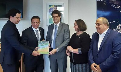 O secretário de Meio Ambiente do Acre, Israel Milani, entregou esta terça-feira,15,em Brasília, ao ministro do Meio Ambiente, Ricardo Salles, o projeto de despoluição do...