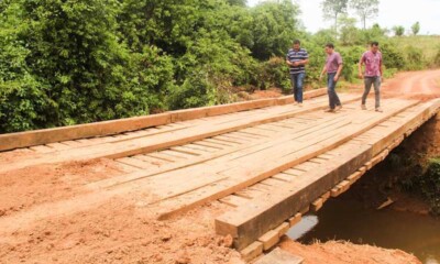 O Prefeito Tião Flores acompanhado do Vice-prefeito e Secretário de Obras Raimundão, foi ver de perto os serviços de conclusão de melhorias no ramal do Guajará...