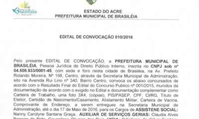 Os cargos são para Assistente Social, Auxiliar de Serviços gerais e Professor do Ensino Fundamento para Zona Rural A prefeitura de Brasileia publicou na tarde de...
