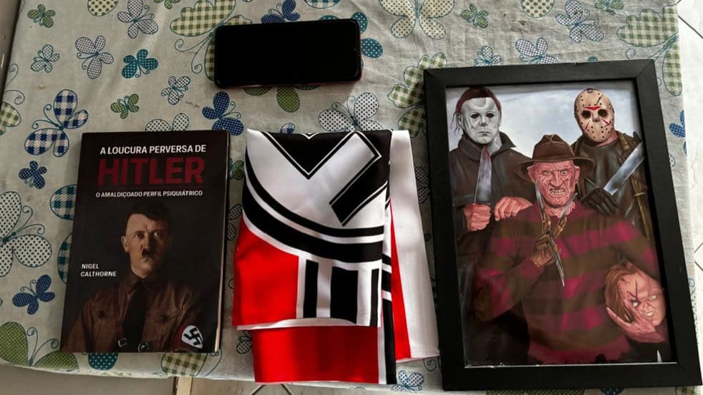 No BO, o homem narrou que descobriu no telefone do filho grupos que faziam referência ao nazismo e adoração a Adolf Hitler. Além disso, ele encontrou bandeiras que o jovem teria comprado pela internet.