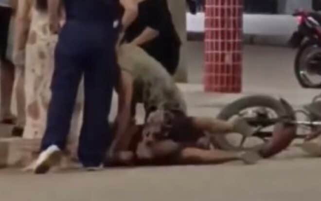 Imagens obtido pela reportagem, é possível ver o momento em que o pai da jovem imobiliza o suspeito no chão, impedindo sua fuga enquanto aguardava a chegada da Polícia Militar. O pai justificou sua atitude pela revolta ao saber que a filha havia sido alvo do assédio.