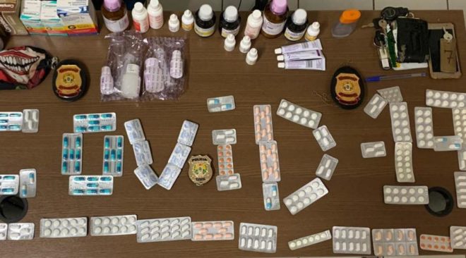 Pai e filho (não tiveram os nomes revelados) falsificavam receitas médicas para pegar remédios, principalmente destinados ao tratamento da covid-19. Depois, os medicamentos eram vendidos, como kit covid-19.