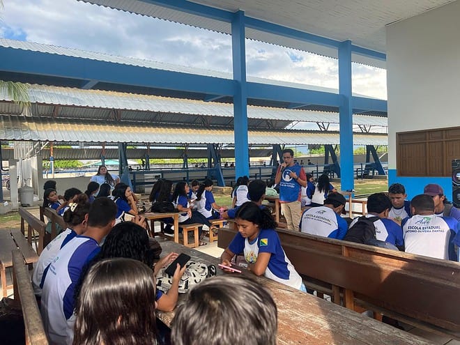 O Programa Viva Bem realizou mais uma palestra educativa no Acre, agora na Escola Municipal Antônio de Oliveira Dantas, em Mâncio Lima-AC. O evento reuniu aproximadamente 90 jovens, com idades entre 14 e 18 anos, para discutir os riscos associados ao consumo de álcool e ao crescente uso do vape/cigarro eletrônico, questão apontada pela coordenação escolar como uma preocupação crescente com os estudantes.