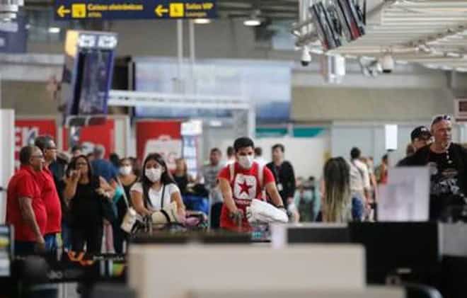 Passageiros e funcionários circulam vestindo máscaras contra o novo coronavírus (Covid-19) nos Aeroportos (Fernando Frazão/Agência Brasil)