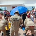 No local, os socorristas encontraram a vítima, identificada como Erivelton da Silva, de 34 anos, caída ao solo. Ele apresentava ferimento cortante no supercílio esquerdo e escoriações pelo corpo, mas, segundo a equipe de resgate, não havia sinais aparentes de fraturas.
