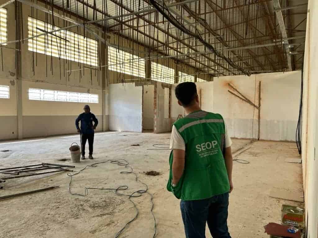 As obras avançam também na Escola do Poder Judiciário, onde são executados os serviços de pintura e de instalações elétricas e de lógica, drenos e forros de gesso e melhorias no auditório.