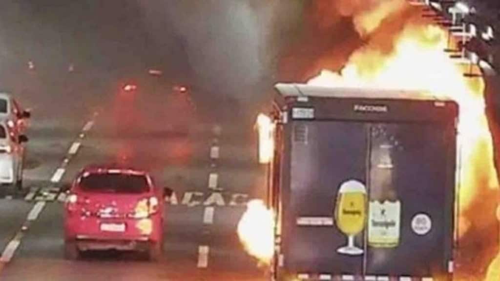 “Até aí ninguém pensava em sair do ônibus. Quando descobrimos o que estava acontecendo foi que decidimos saltar, até porque estávamos muito perto do caminhão. A gente não sabia se ele poderia explodir.”