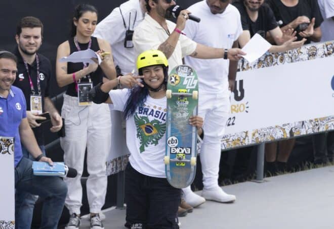 Achou que não ia ter Brasil nessa? Achou errado! Raicca Ventura representou o Brasil da melhor forma. A paulista de São Caetano do Sul tem apenas 14 anos, mas já é campeã brasileira de skate park e terminou o STU Open Rio na 4ª colocação. Raicca saiu muito feliz com seu desempenho, já que essa foi sua primeira competição internacional da carreira. A brasileira disputou o terceiro lugar até o fim, e foi ultrapassada na última volta pela norte-americana Mina Stess. Raicca tem um estilo de skate muito intenso, explorando a altura de suas manobras. A jovem skatista nas esconde que as Olimpíadas de Paris são seu principal objetivo na carreira.
