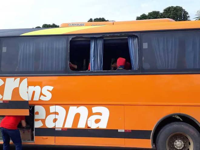 Os criminosos, atiraram pedras e uma das janelas foi totalmente estilhaçada. Os estilhaços de vidro chegaram a ferir um dos passageiros.